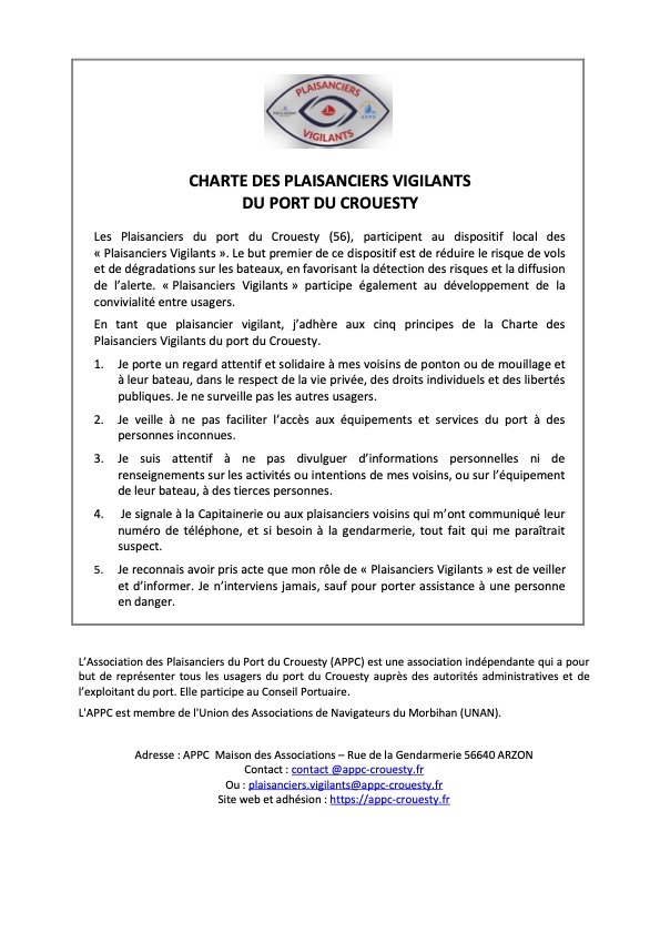 Association des Plaisanciers du 13 rue de la Gendarmerie 56640 Arzon